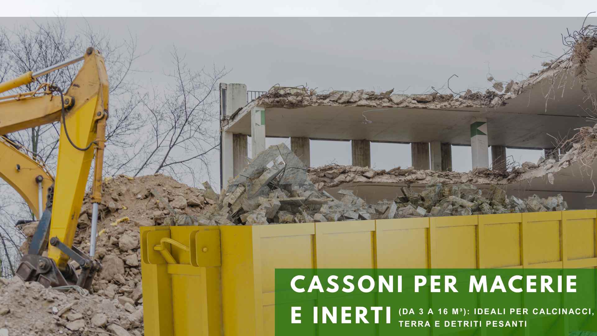 Perfetti per la raccolta di calcinacci, terra, pietrisco e detriti pesanti. Questi cassoni robusti e in ferro sono progettati per sopportare carichi consistenti e lavorare anche in ambienti difficili. Il sistema scarrabile consente di sostituire il contenitore pieno con uno vuoto in pochi minuti, riducendo al minimo i tempi morti e mantenendo il cantiere efficiente e pulito